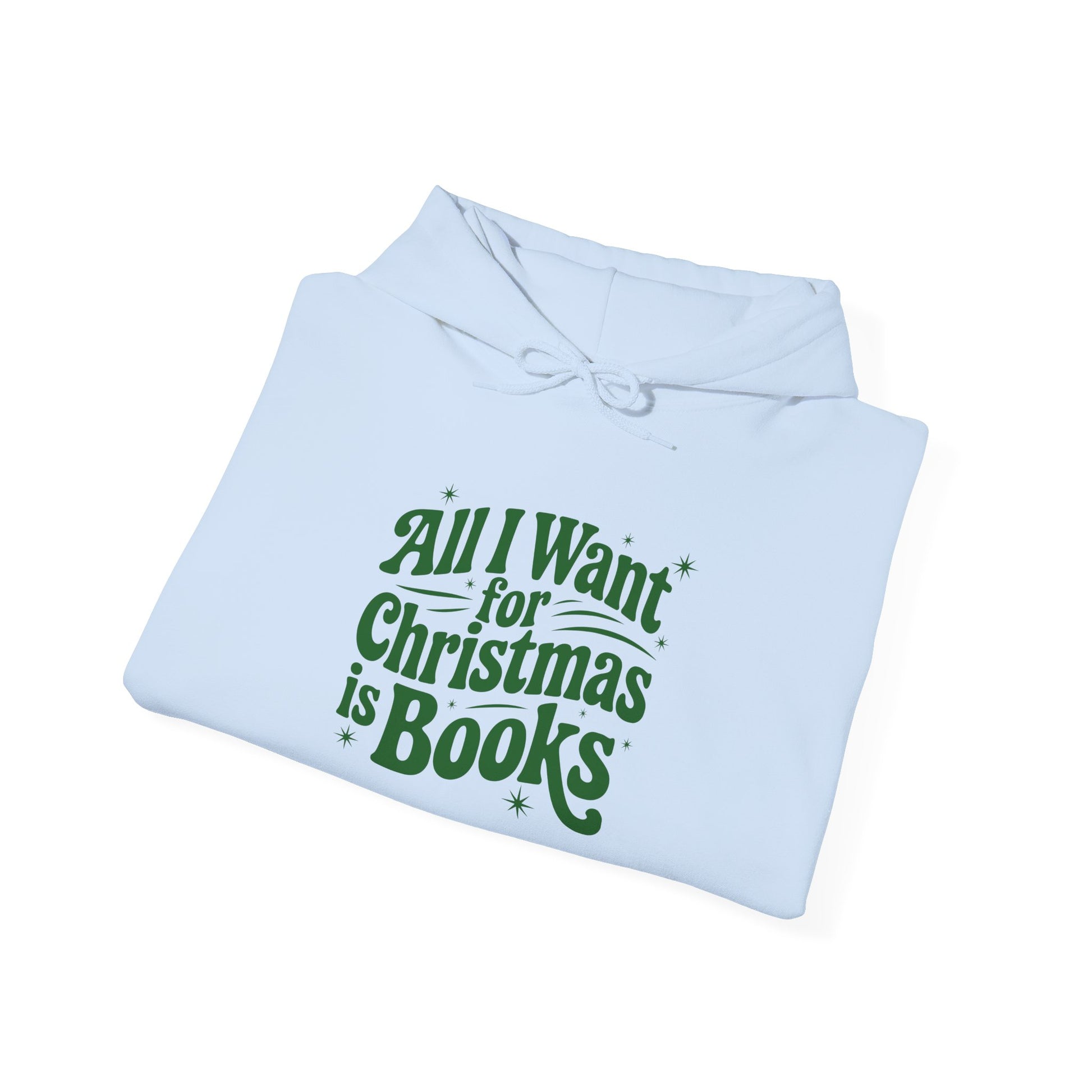 Cozy up in the spirit of the season with the All I Want for Christmas is Books Hoodie — the must-have holiday staple for every book lover.