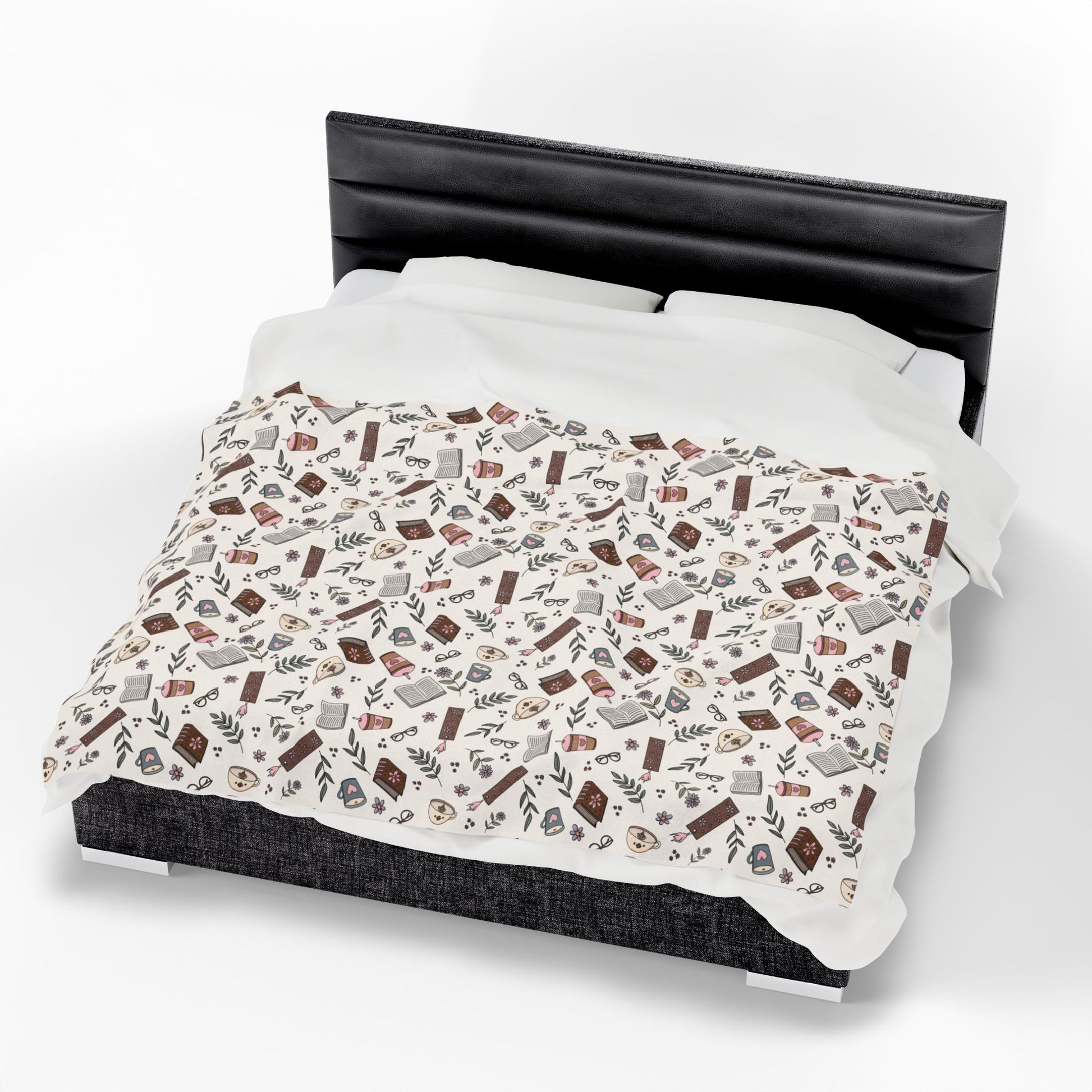 Made from 100% polyester velveteen, it offers a luxuriously soft touch and medium-heavy warmth that’s ideal for reading marathons, lazy Sundays, or chilly nights by candlelight. The design is printed in high detail and vibrant color on one side, bringing your love for books and coffee to life with style and charm.