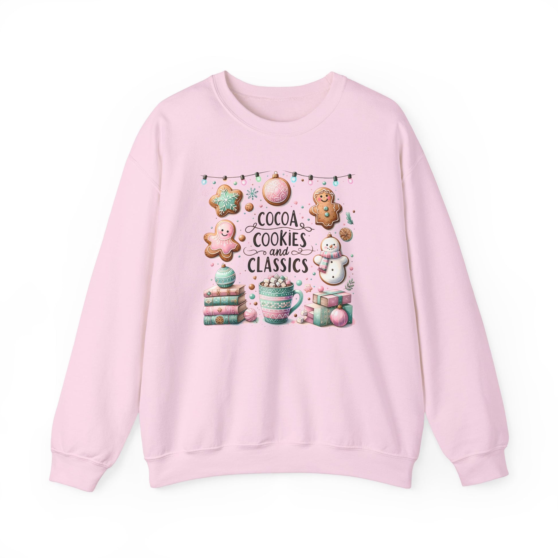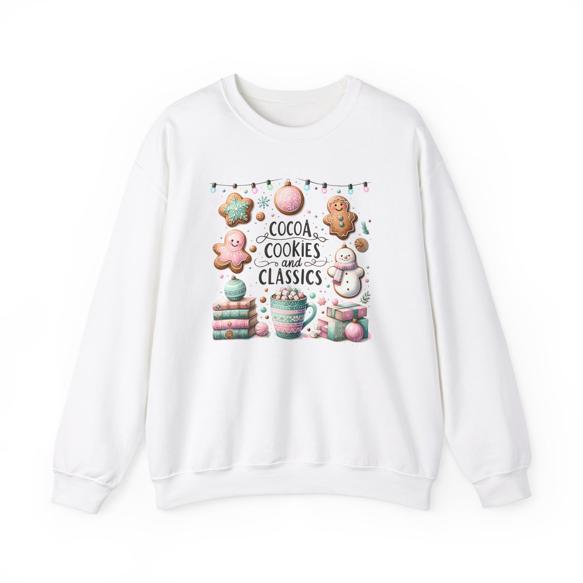 Snuggle up in literary warmth with our "Cocoa, Cookies, and Classics" sweatshirt! Perfect for cozy evenings spent curled up with your favorite books, this stylish sweatshirt is a delightful reminder of the simple pleasures in life. Crafted from ultra-soft fabric, it offers a relaxed fit that keeps you comfortable whether you’re enjoying a cup of hot cocoa or baking cookies.