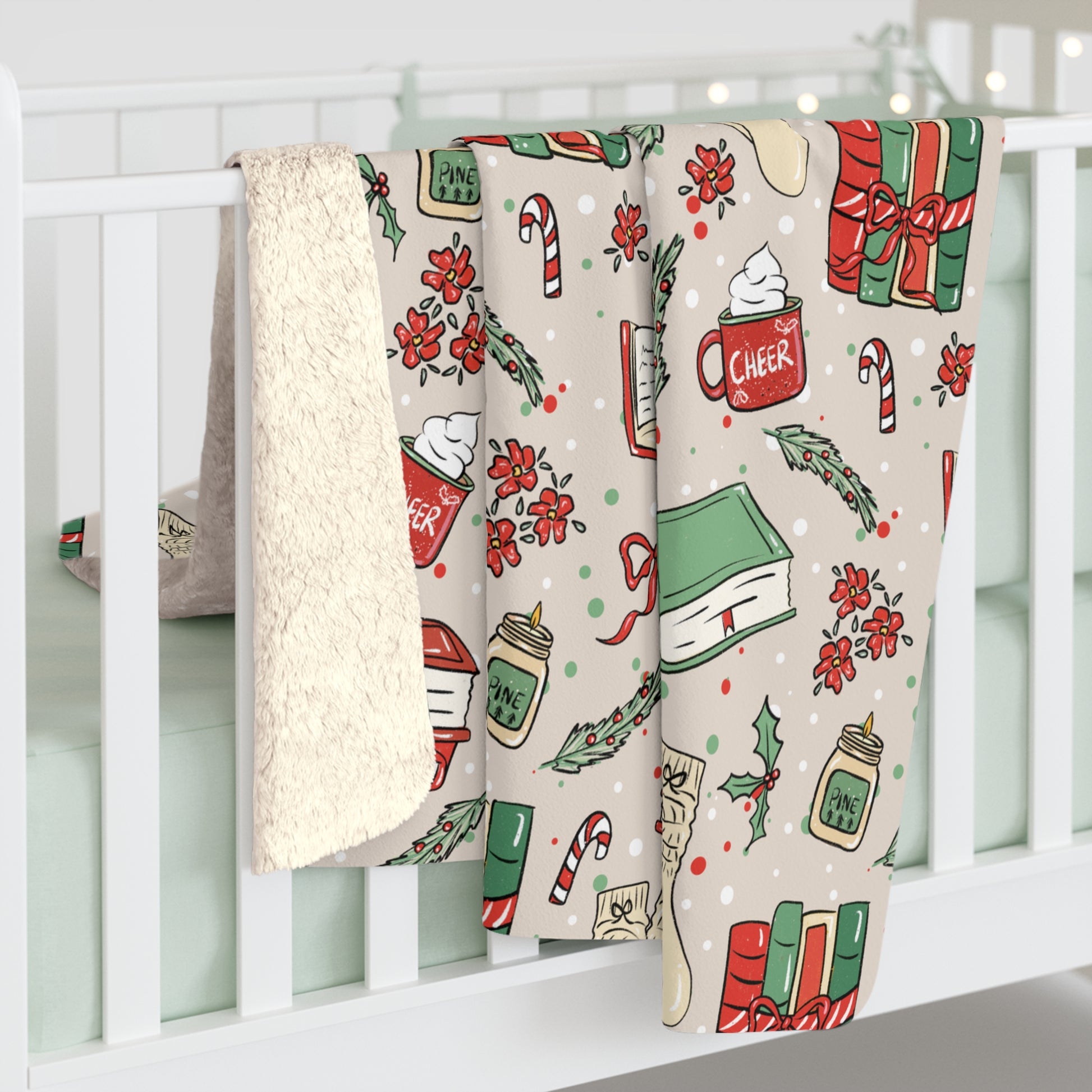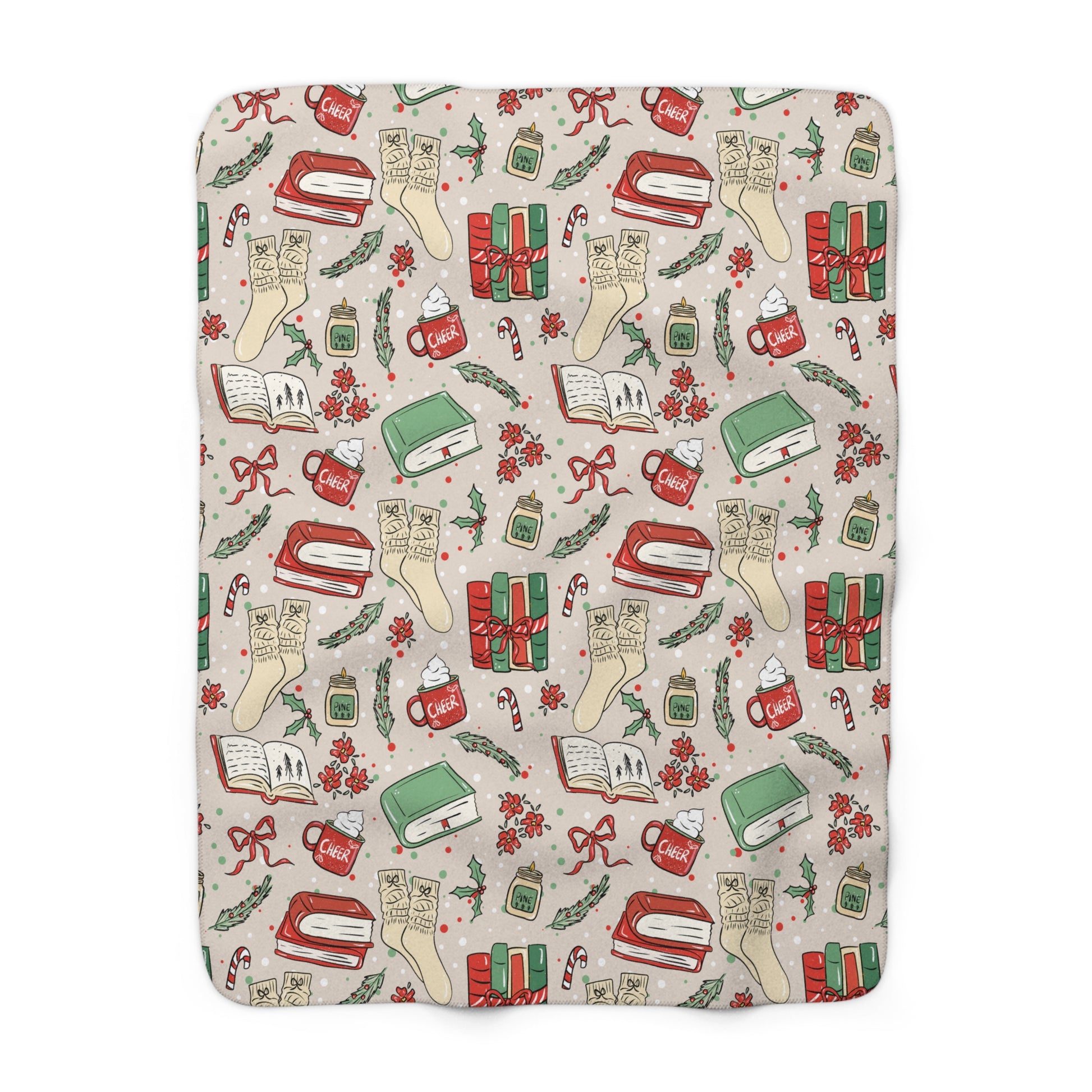 Wrap yourself in the warmth of the season with our Cozy Christmas Chapters Sherpa Fleece Blanket — the ultimate companion for winter reading sessions and holiday movie nights. Featuring charming illustrations of stacked books tied with ribbons, pine candles, cozy socks, candy canes, and steaming mugs of cheer, this design captures the magic of curling up by the fire with your favorite story.