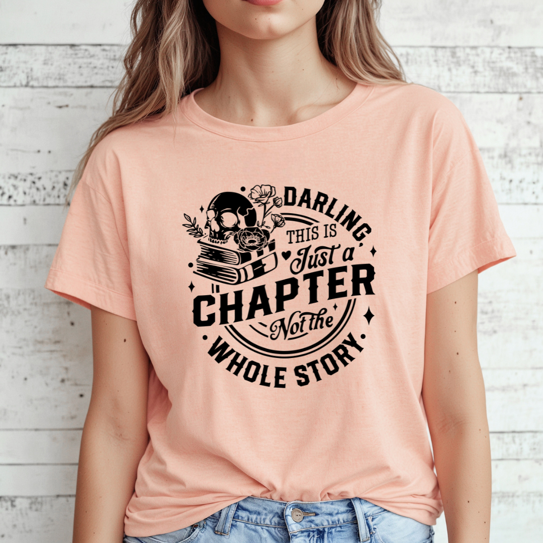 Life is a journey, and every challenge is just a chapter, not the entire story. Our soft, 100% Airlume combed and ring-spun cotton tee reminds you to embrace every moment with grace. Featuring the uplifting message, "Darling, this is just a chapter. Not the whole story," this shirt is perfect for anyone who needs a reminder that brighter days are ahead. Whether you're lounging at home or stepping out for the day, wear this tee as a statement of resilience and positivity.