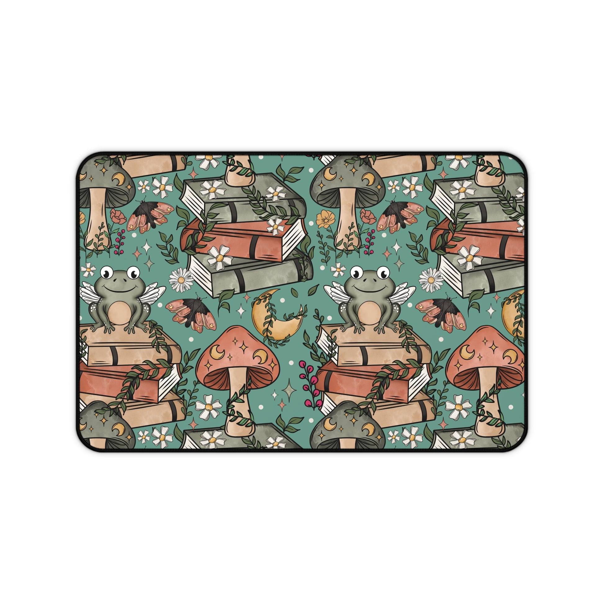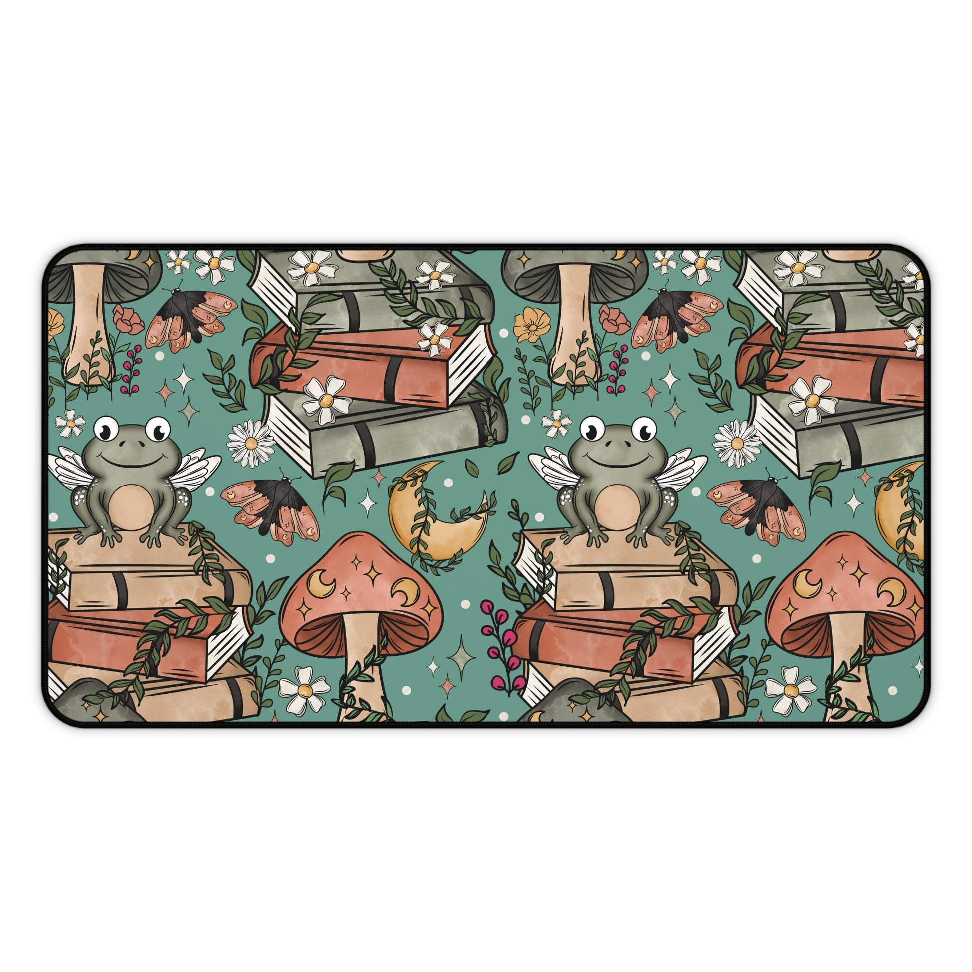 Bring a touch of storybook magic to your workspace with the Enchanted Chapters Desk Mat. Featuring stacks of books, mystical mushrooms, fluttering moths, crescent moons, and even a whimsical winged frog, this design is perfect for readers who want their desk to feel like it belongs in a fairytale.