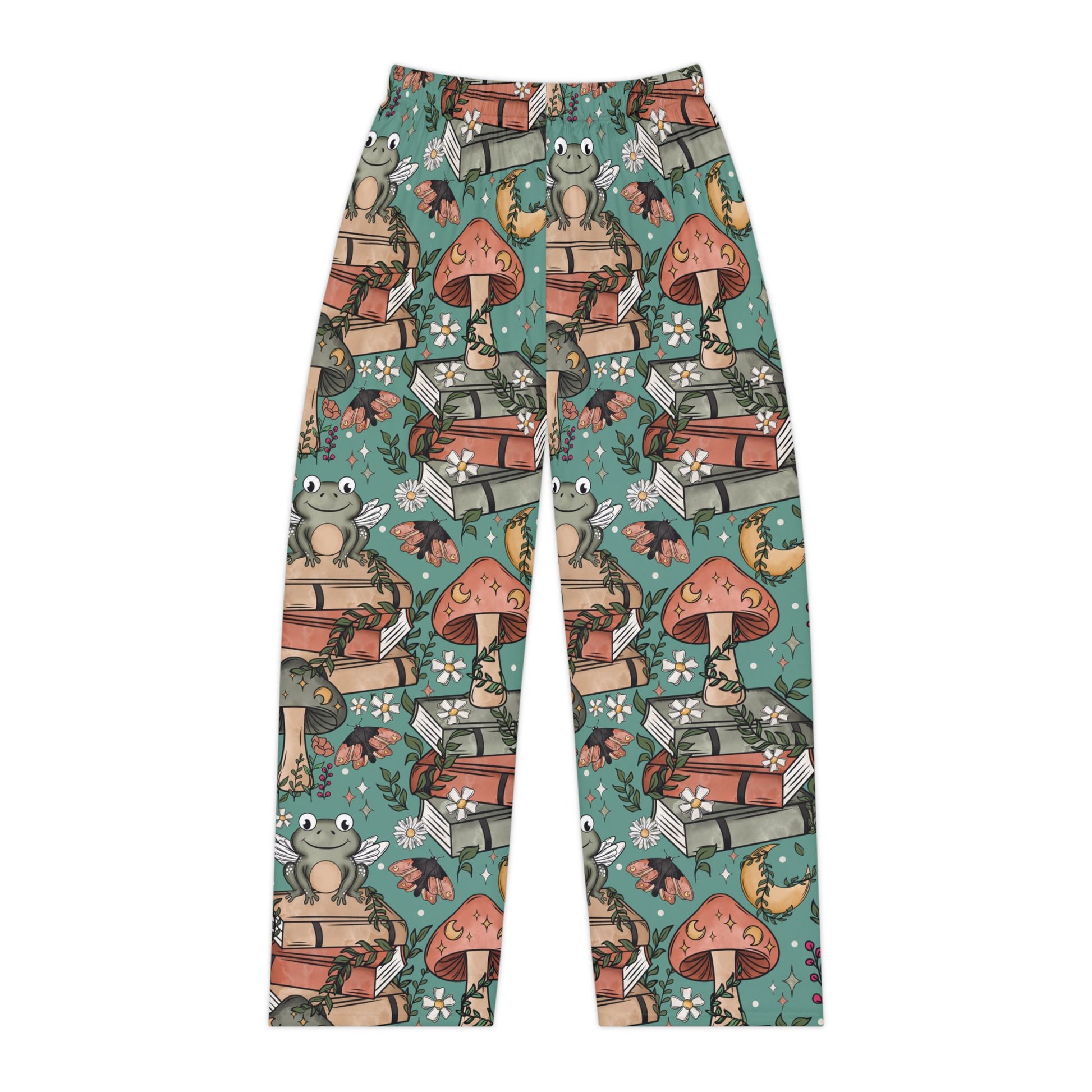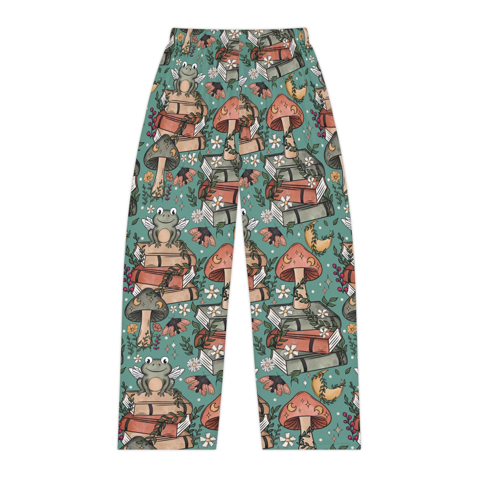 Step into a fairytale dream with our Enchanted Chapters pajama pants — the perfect mix of cozy comfort and whimsical charm. Adorned with fluttering moths, magical mushrooms, stacks of well-loved books, and a sweet little frog with wings, this enchanting pattern brings a touch of cottagecore fantasy to your everyday lounging.