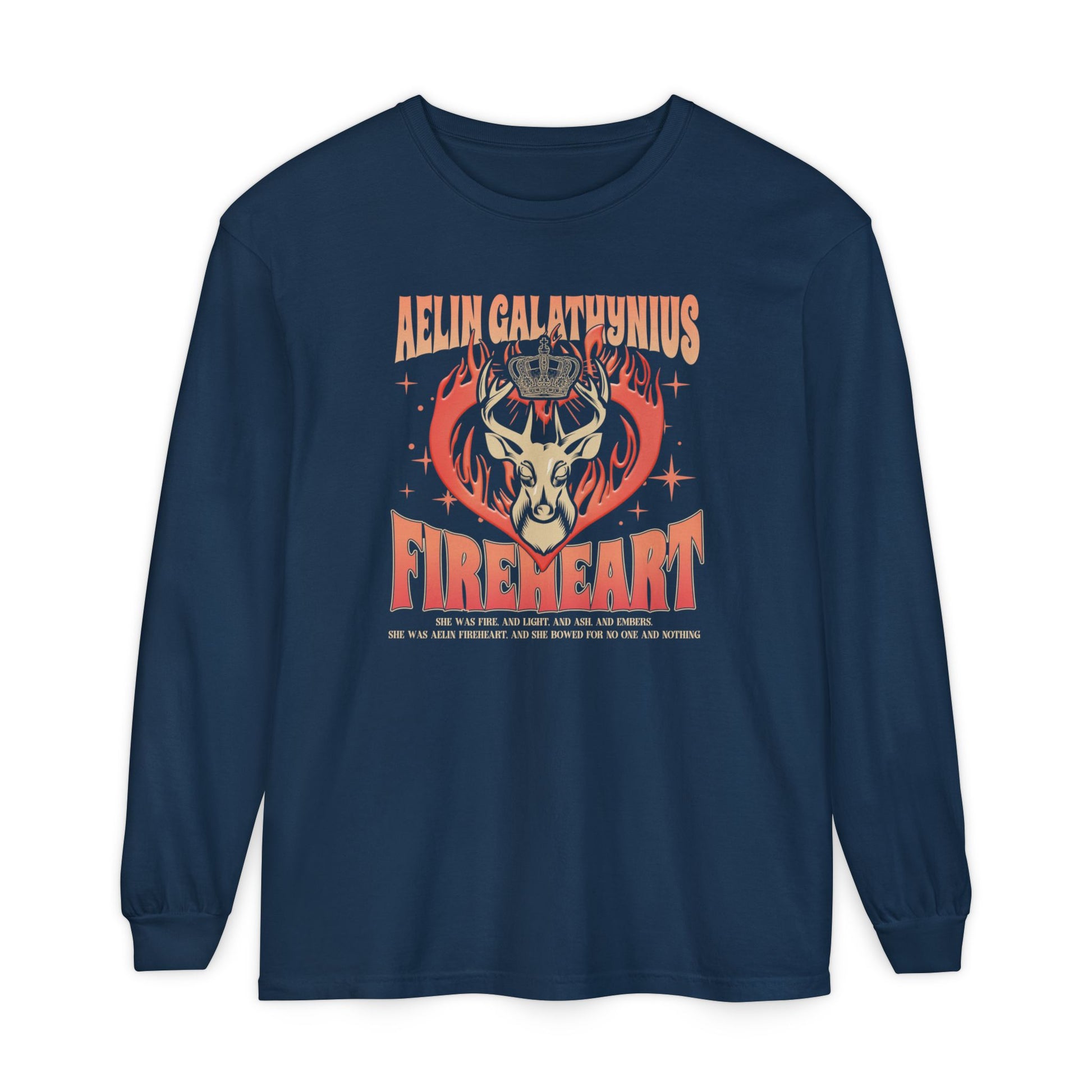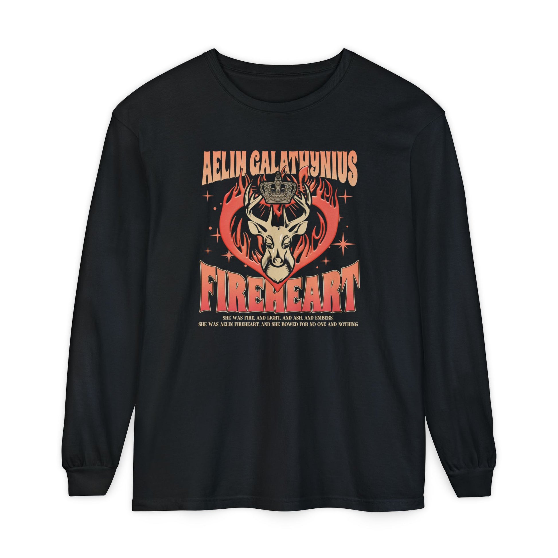 Show your love for the Queen Who Was Promised with our Aelin Galathynius Fireheart Long Sleeve Tee. Officially licensed through Sarah J. Maas, this striking design celebrates Aelin’s fiery spirit and unbreakable strength. Featuring bold artwork on the front and an intricate crowned heart-and-books motif on the back, this tee is a must-have for every Throne of Glass fan. ✨👑📖