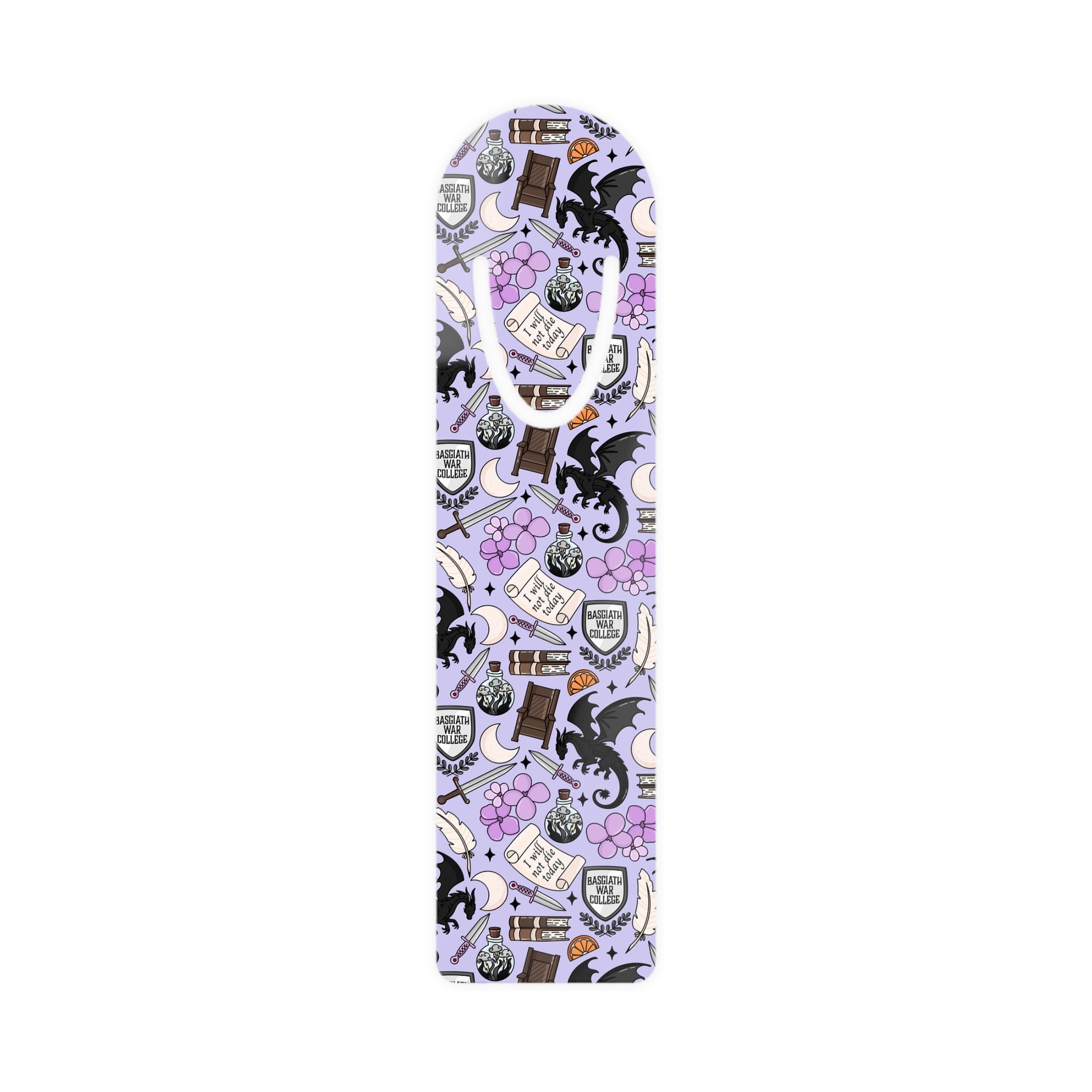 Channel your inner dragon rider every time you turn the page with our Fourth Wing Bookmark. Inspired by the world of Basgiath War College, this design features fierce dragons, swords, scrolls, and symbols of strength and resilience — including the iconic “I will not die today” quote. It’s the perfect reading companion for fans of epic fantasy, danger, and a little bit of romance.