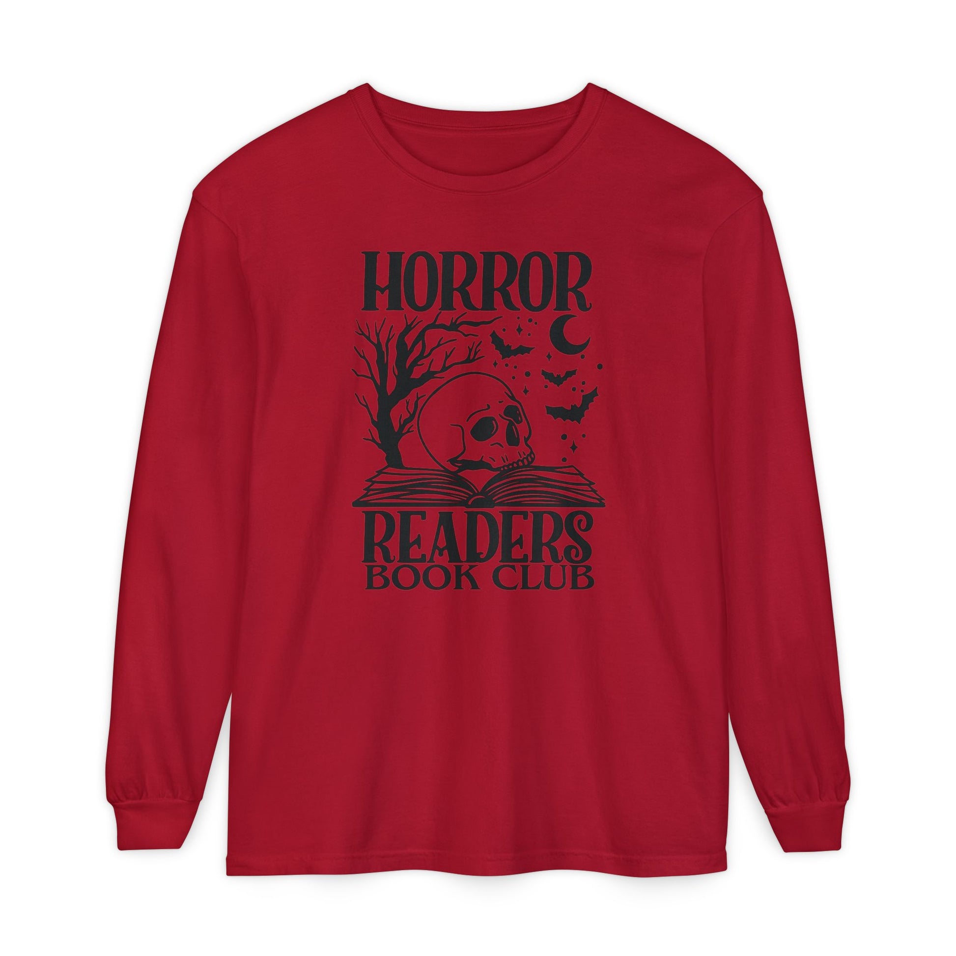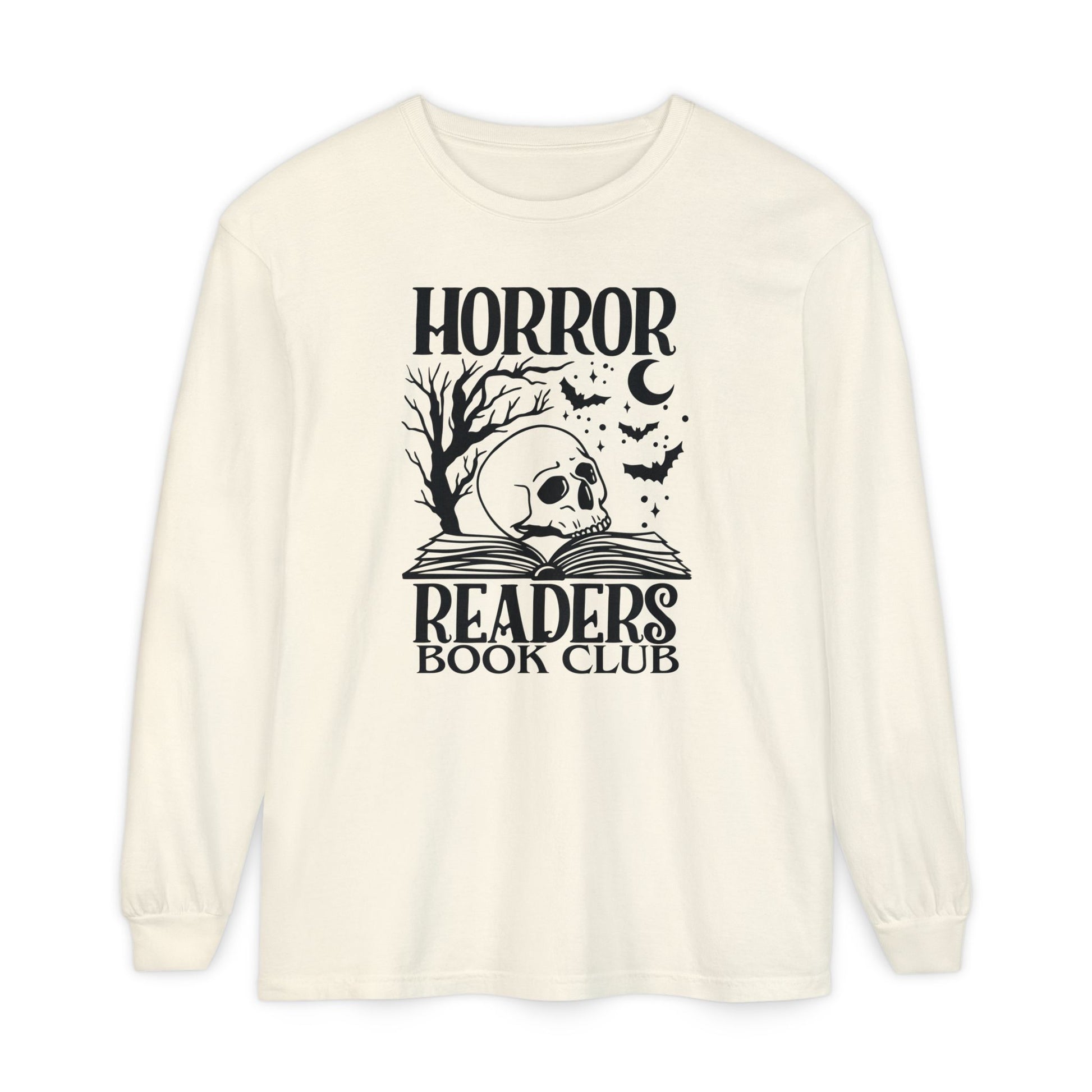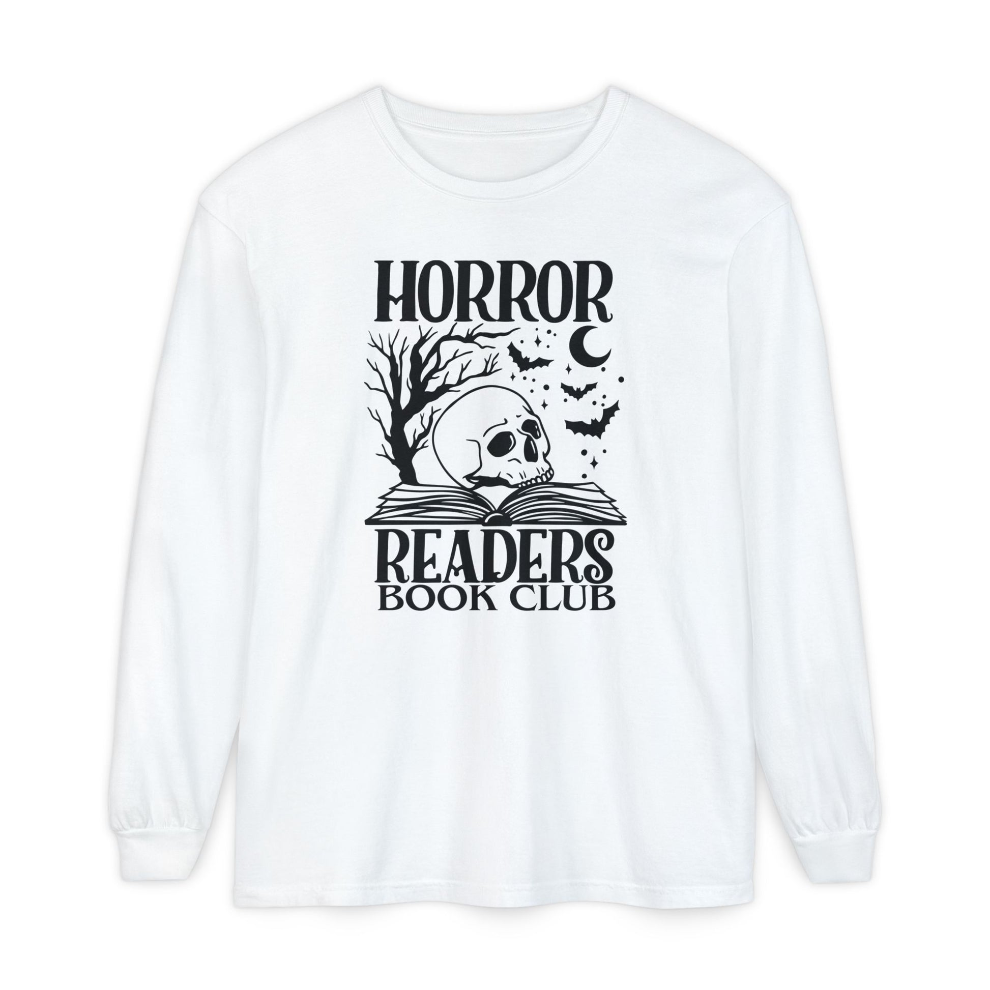 For the readers who love their stories dark, thrilling, and just a little bit haunting—the Horror Readers Book Club long sleeve tee is your new uniform. Perfect for late-night reading sessions, spooky season strolls, or curling up with your favorite gothic novel, this shirt celebrates your love for all things eerie and bookish.