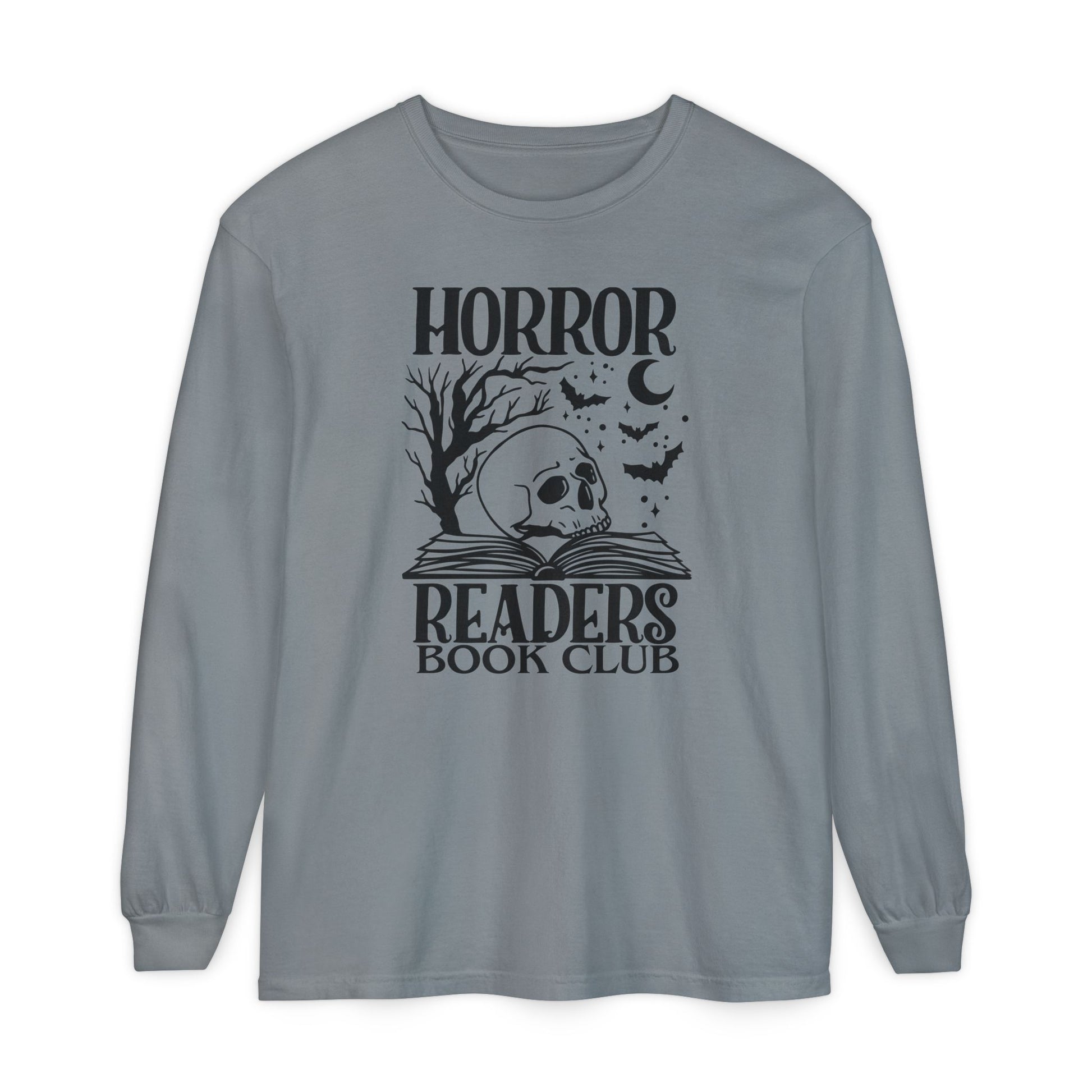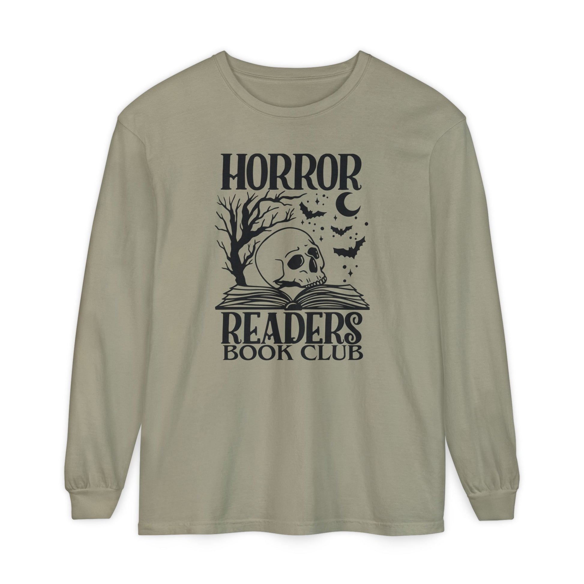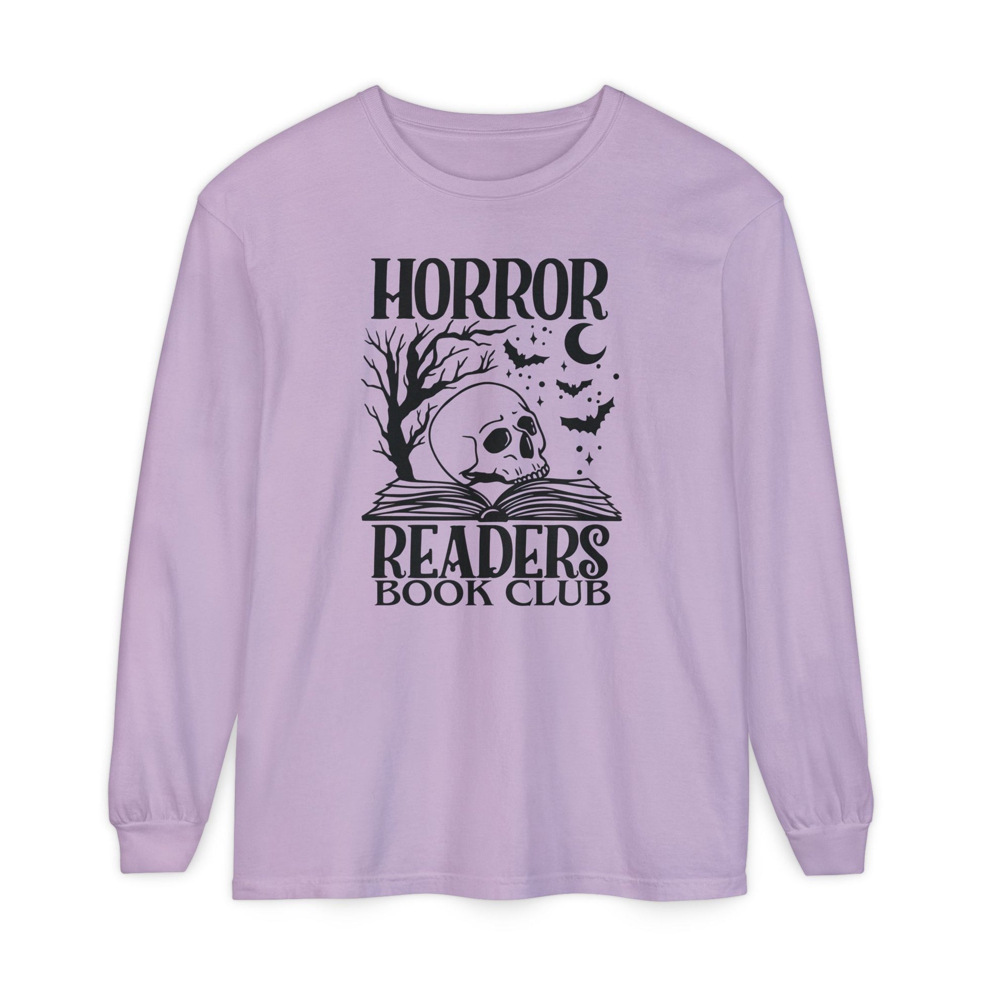 For the readers who love their stories dark, thrilling, and just a little bit haunting—the Horror Readers Book Club long sleeve tee is your new uniform. Perfect for late-night reading sessions, spooky season strolls, or curling up with your favorite gothic novel, this shirt celebrates your love for all things eerie and bookish.