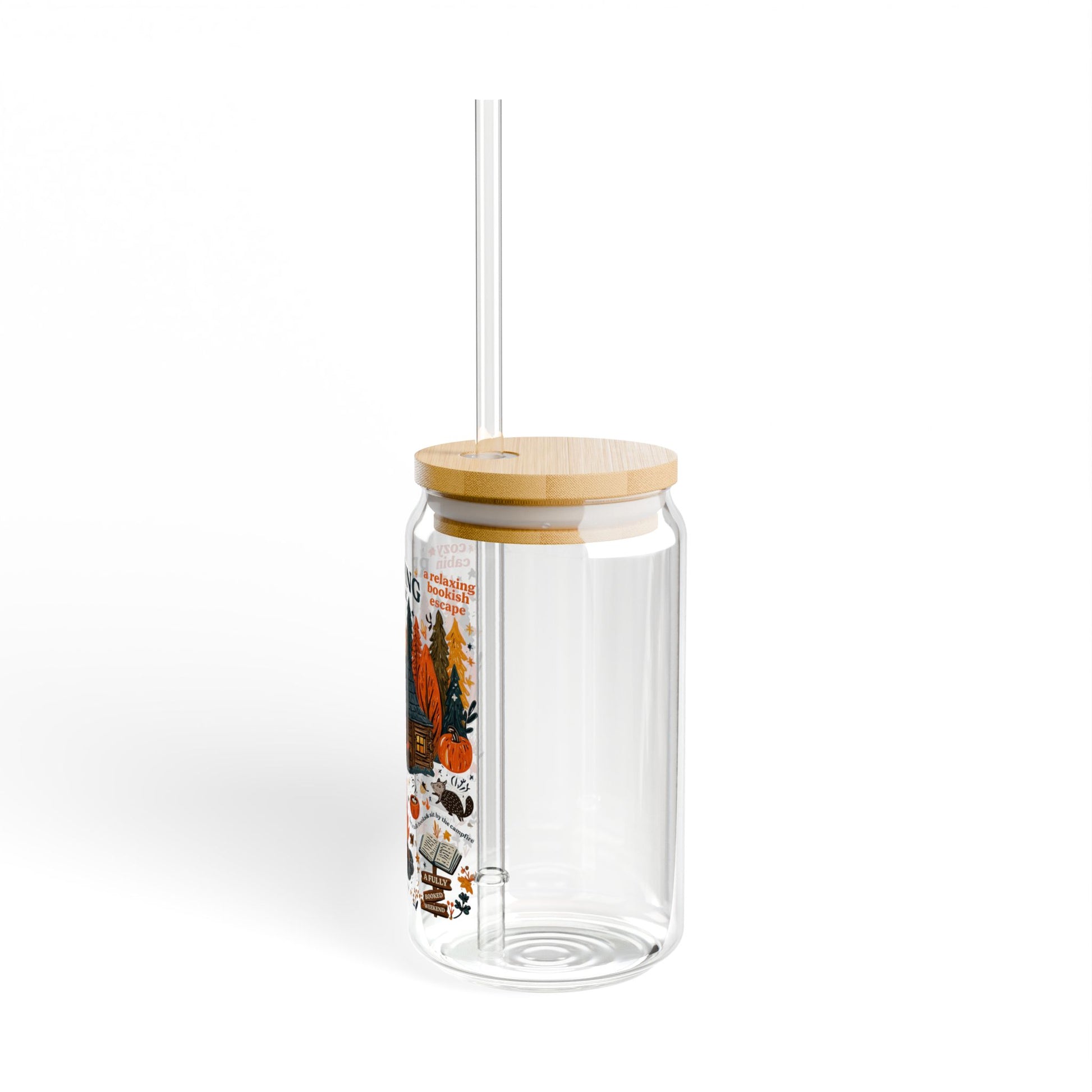 Bring cozy cabin vibes to every sip with our Reading Retreat 16oz Sipper Glass. Featuring a whimsical design of a log cabin in the woods, campfire, books, and all the autumn comforts, this glass is perfect for book lovers who dream of their own weekend escape.
