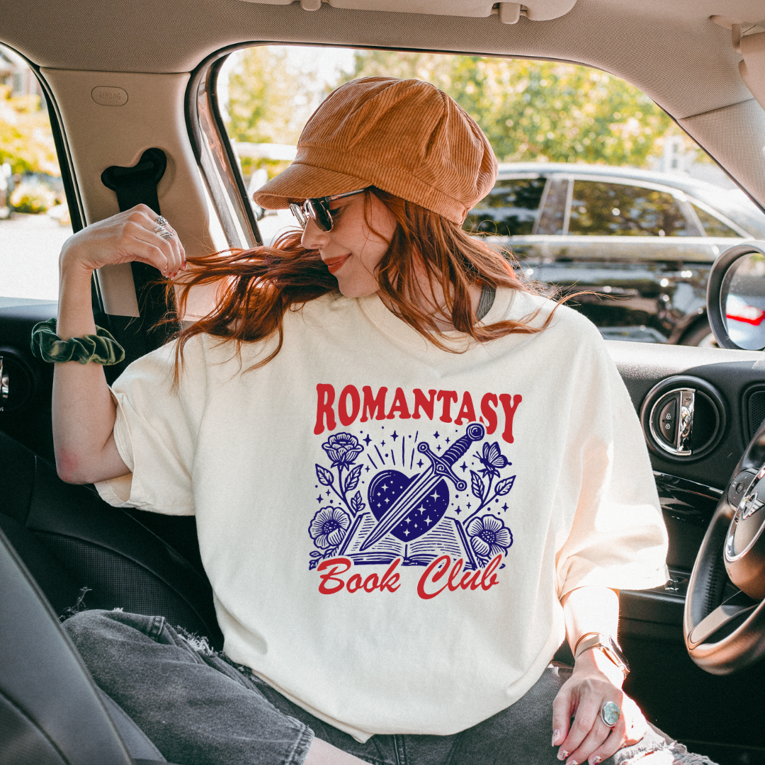 Calling all romantasy lovers—this one’s for you! Whether you're swooning over epic love stories or journeying through magical worlds, the Romantasy Book Club t-shirt is the perfect way to showcase your favorite genre.