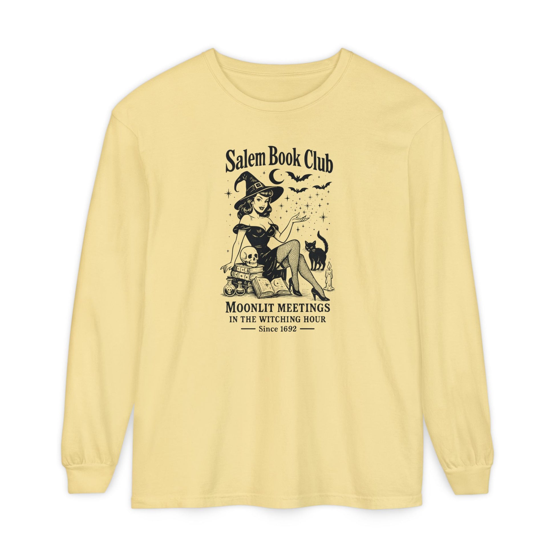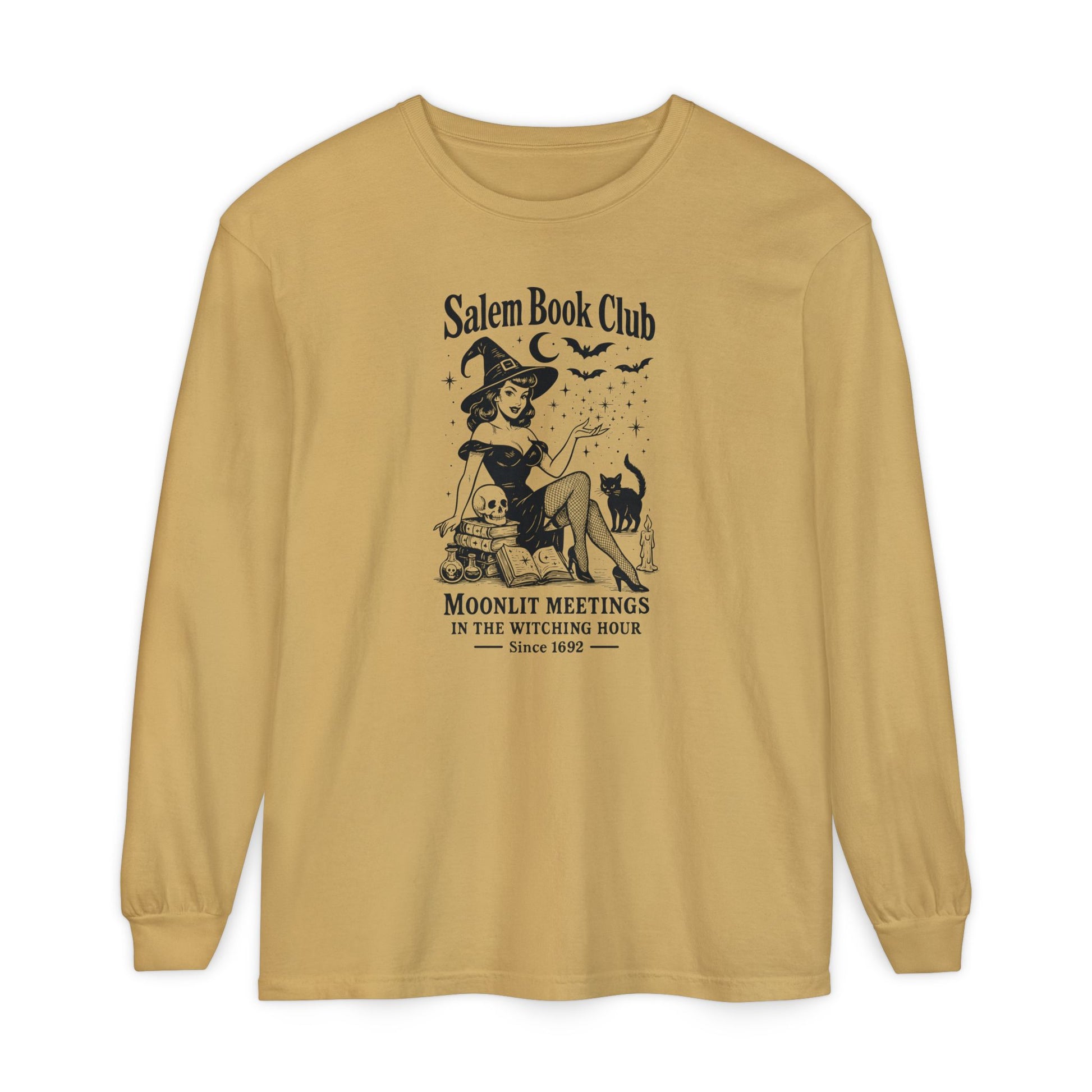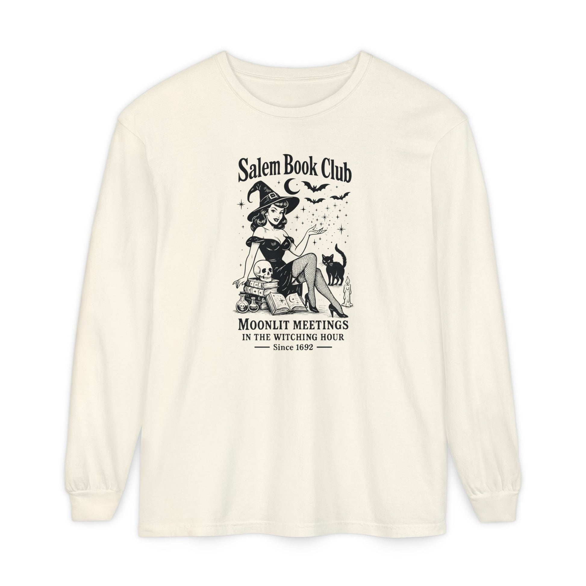 Join the coven of readers with our Salem Book Club Long Sleeve Tee. Perfect for book lovers who crave spooky stories, witchy vibes, and the magic of gathering with fellow readers, this tee blends cozy comfort with hauntingly bookish style. Whether you’re curled up with a dark fantasy, a gothic classic, or a chilling thriller, this shirt is your official uniform for midnight chapters. 🕯️📖✨