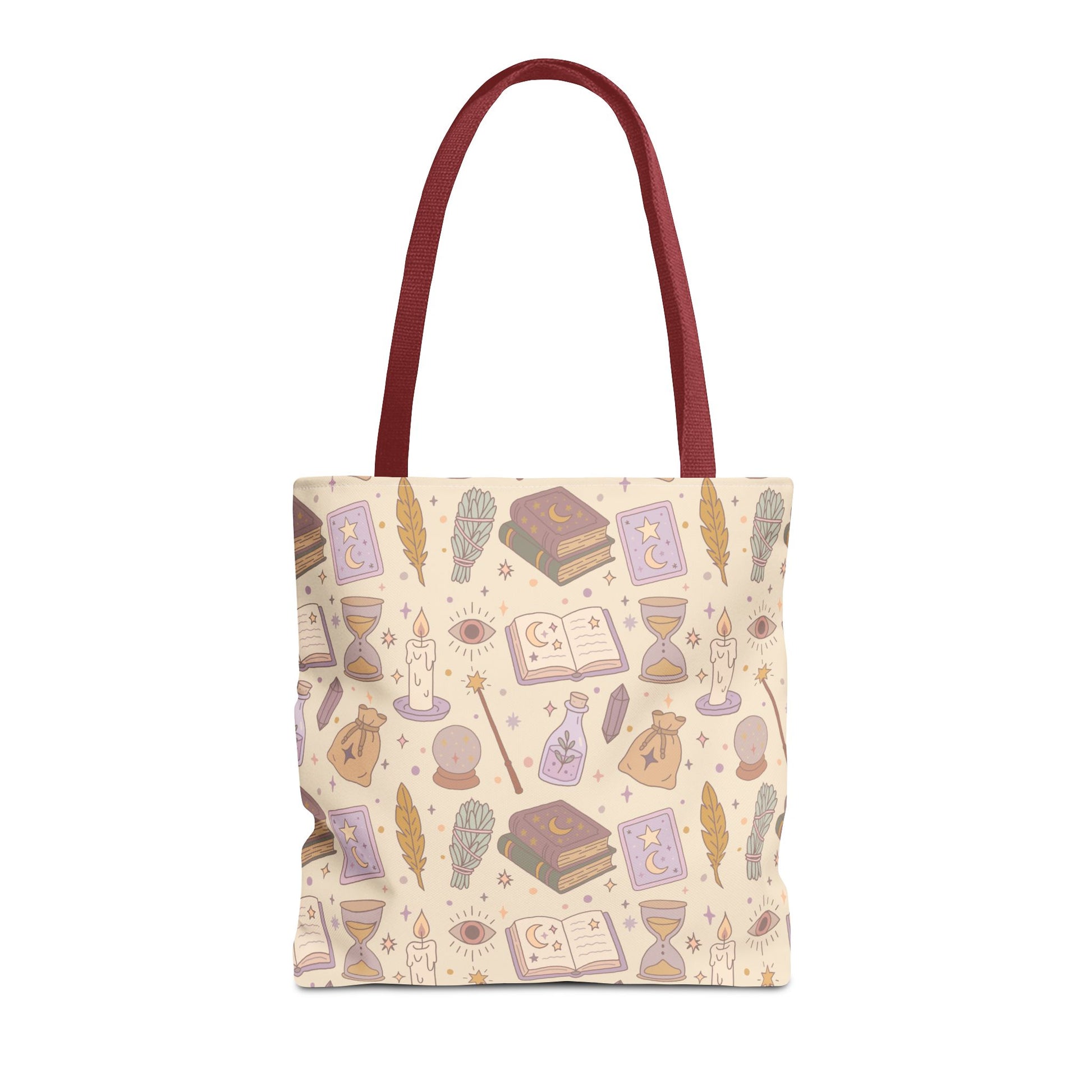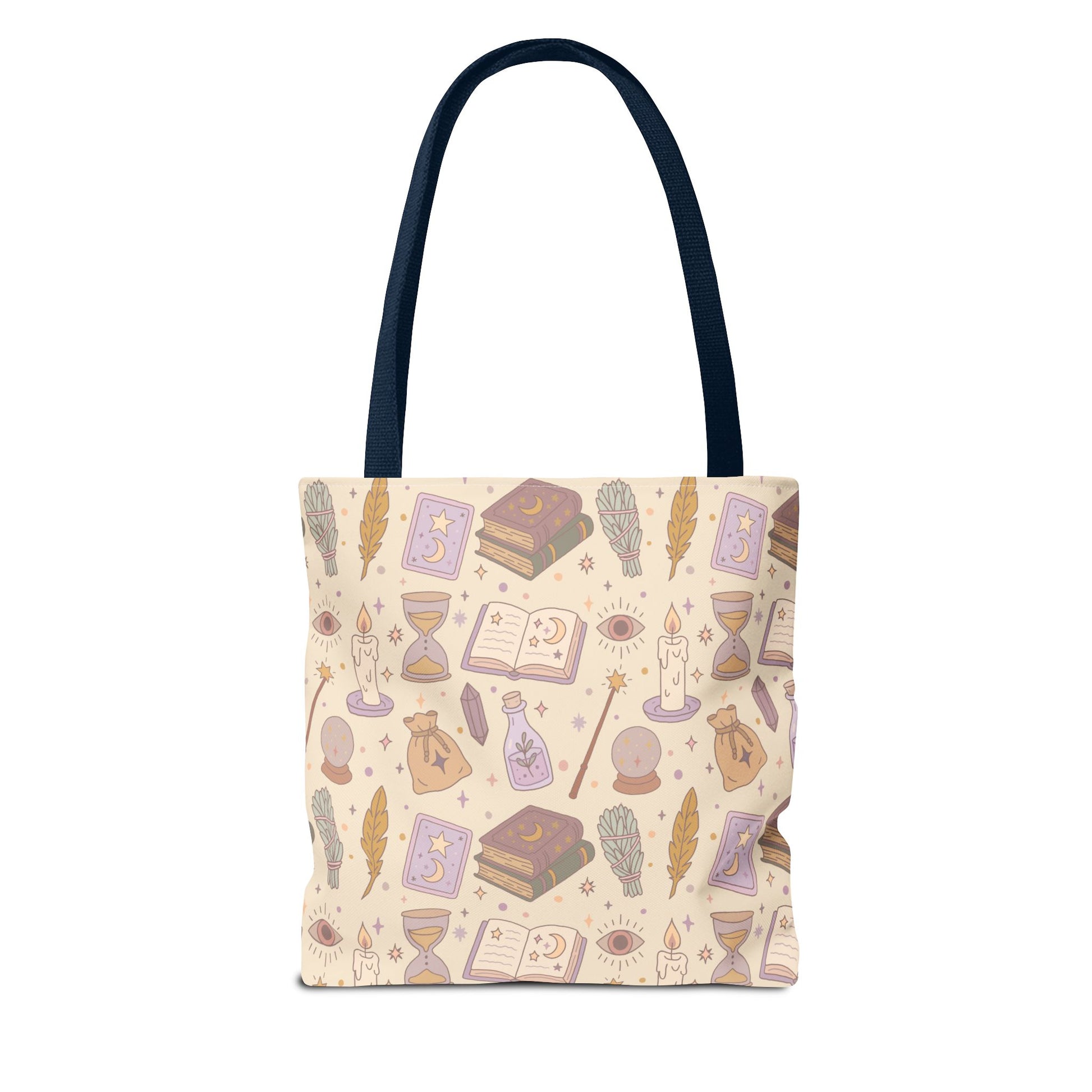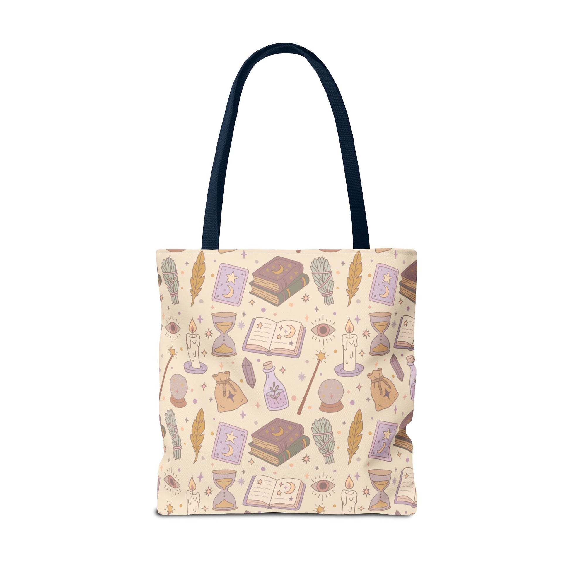 Crafted from 100% spun polyester, this bag blends durability with charm. With double-stitched seams, a nonwoven laminate lining, and sturdy cotton webbing straps, it’s built to last through countless adventures—whether you’re wandering your favorite bookstore, heading to class, or casting spells by moonlight.